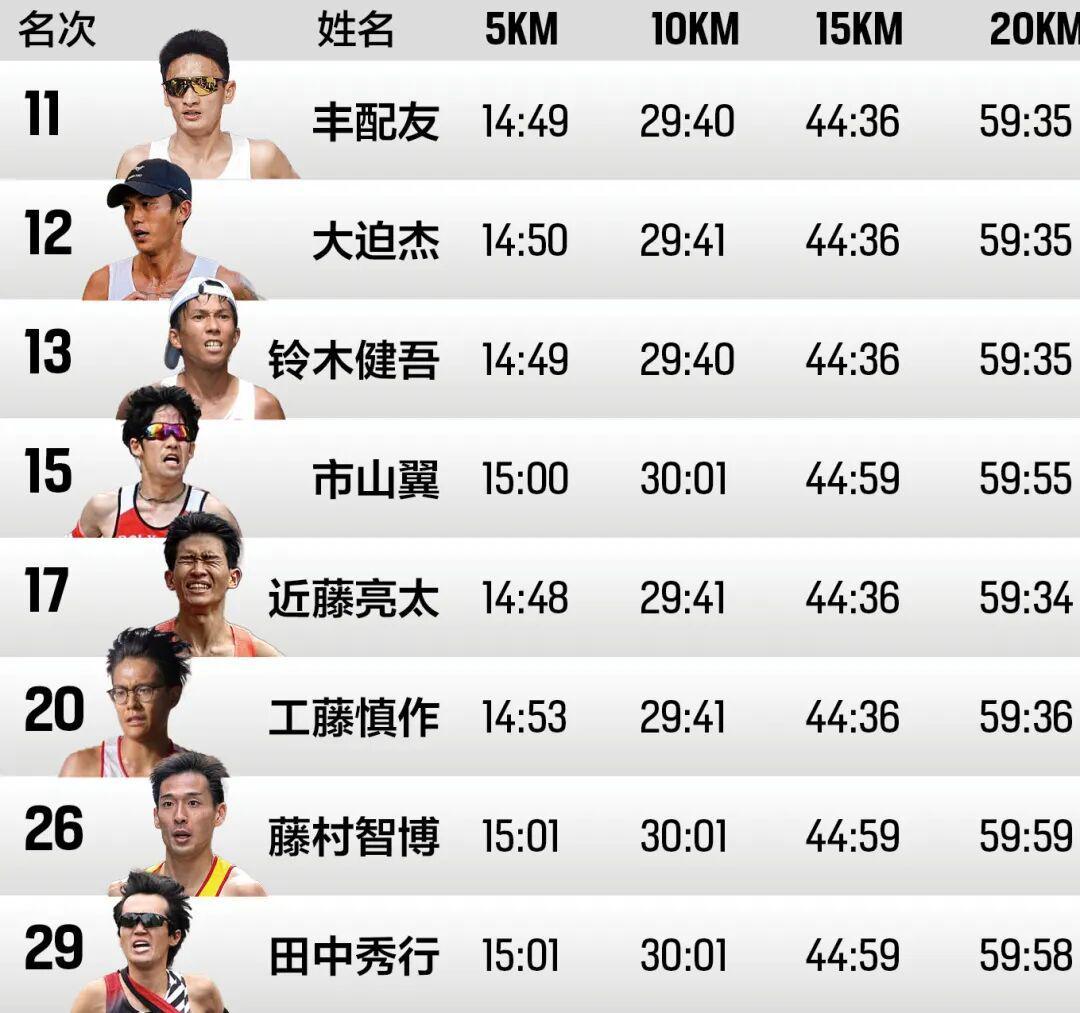 本场比赛最引人注目的亚洲内竞争在中国选手丰配友与日本选手大迫杰之间展开。丰配友从比赛开始就采取稳健策略,赛前他透露自己会跟着255-256配速先跑,看能坚持到多远。出发后,按目标配速前行的他始终专注于赛道。作为中国国内的领跑者,丰配友选择了跟跑国外第二集团。比赛甫一开始,第一集团并没有在预期的2分53-2分54配速下起跑。3公里后,桥本龙一以激进的自杀式跑法将配速提至2分48秒,在第一个5公里以14分34秒领先后续部队11秒。丰配友则紧随大迫杰,与铃木健吾、太田苍生等跑在一起,第一个5公里用时约在14分49秒。